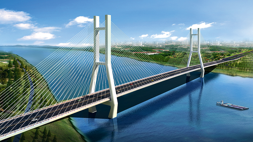 濟(jì)南黃河公路大橋采用雙塔雙索面等高鋼桁架斜拉橋結(jié)構(gòu)形式,全長(zhǎng) 1028 米,主跨 488 米,主塔高 168 米,主梁采用整體式鋼桁梁斷面,上下兩層,上層橋面為雙向八車道公路橋面,下層為雙線軌道橋面。濟(jì)南黃河公路大橋是貫徹落實(shí)黃河流域生態(tài)保護(hù)和高質(zhì)量發(fā)展的國(guó)家戰(zhàn)略深入實(shí)施的重大項(xiàng)目,是加快濟(jì)南“擁河發(fā)展”、奮力開(kāi)啟“黃河時(shí)代”的重要保障。